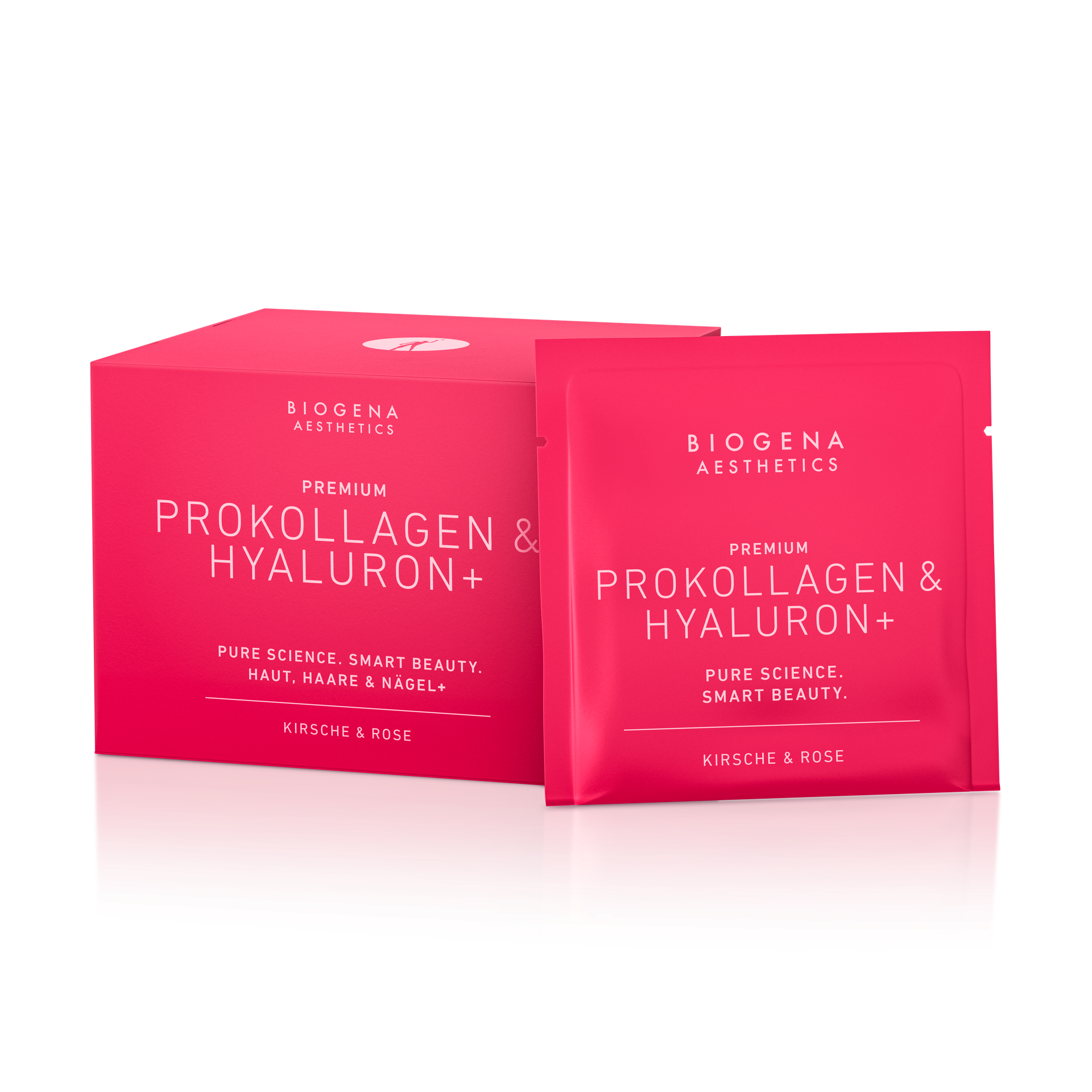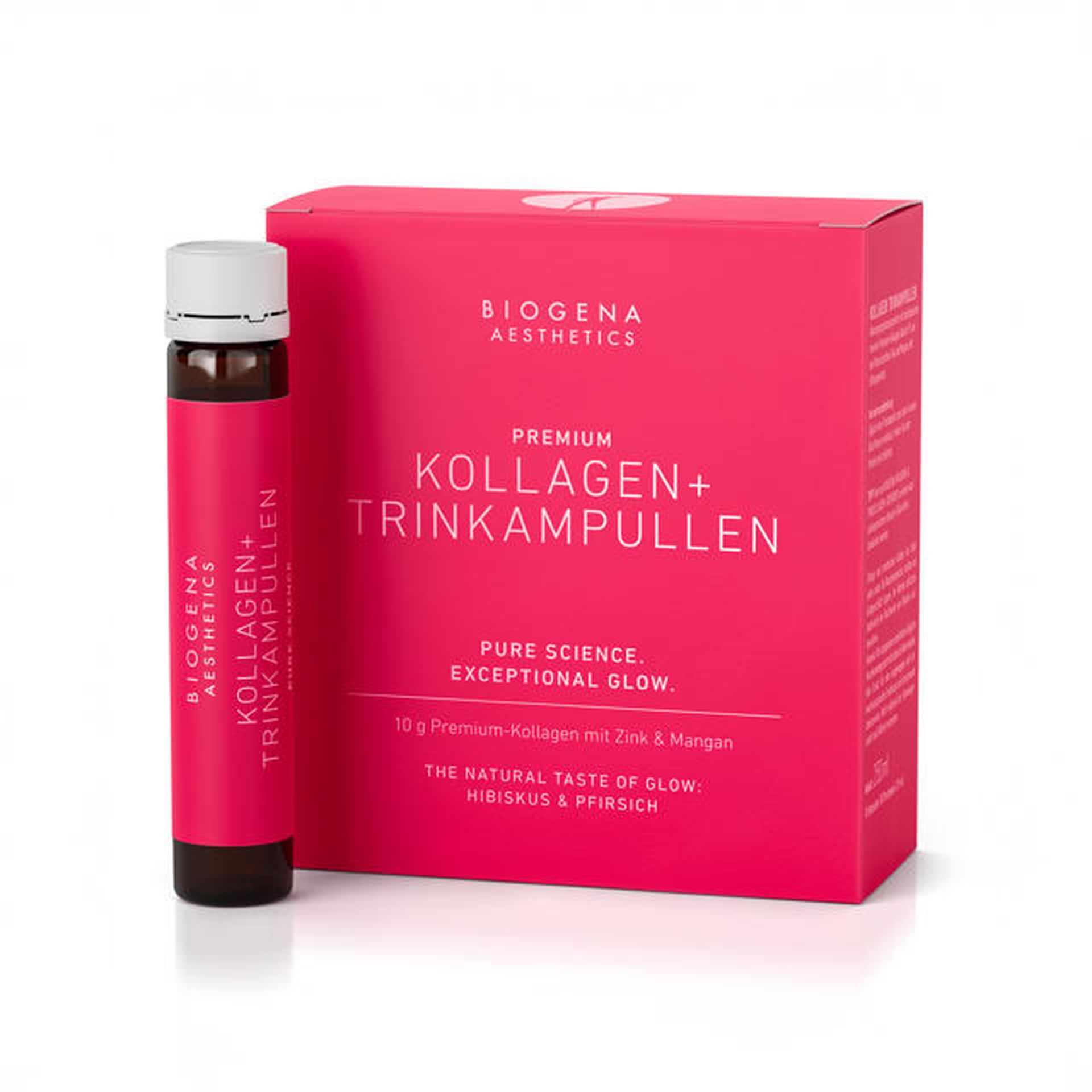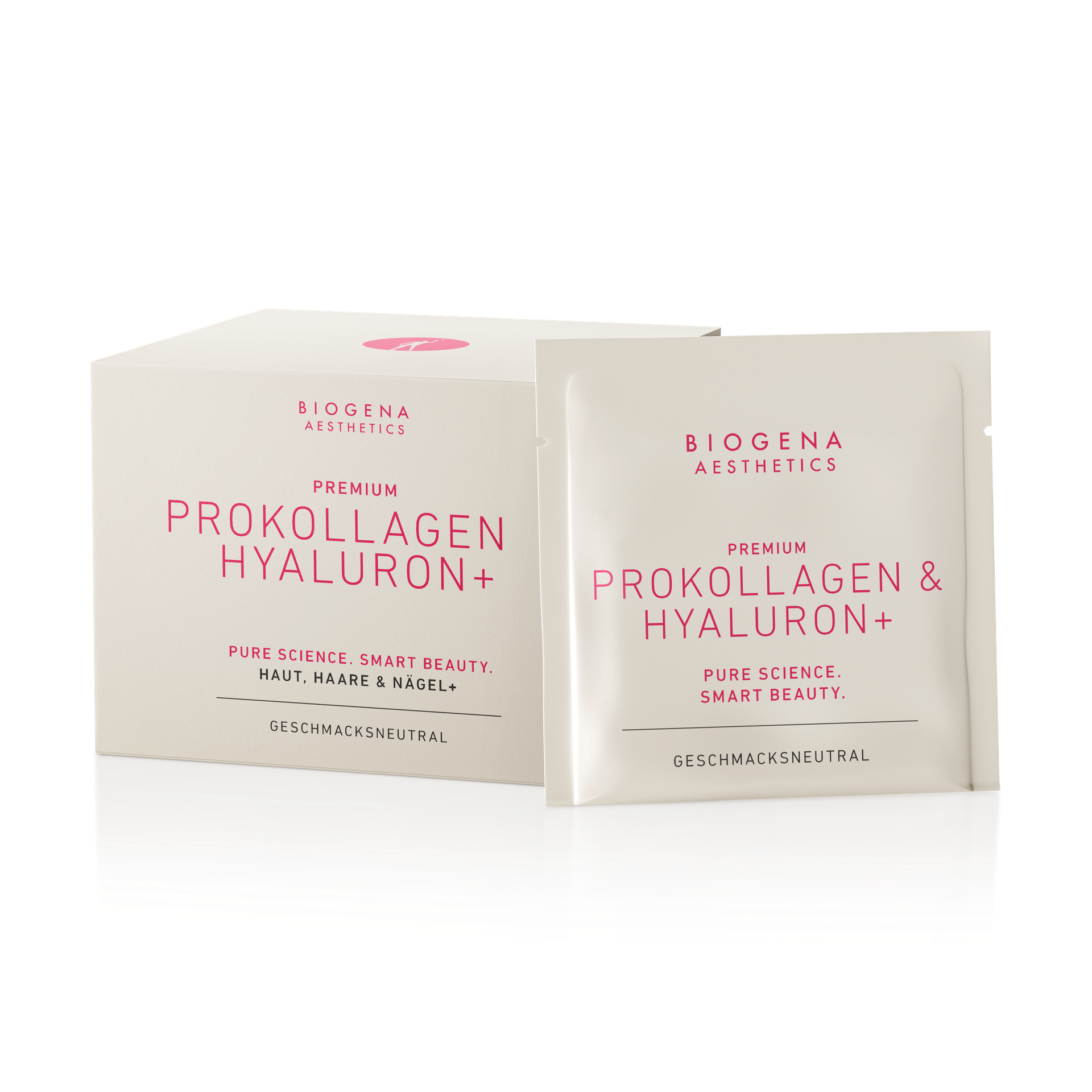 Die BIOGENA AESTHETICS Collagen- und Hyaluron-Drinks punkten durch hochwertige Inhaltsstoffe und unterstützen mit Zink und Biotin die Hautgesundheit.